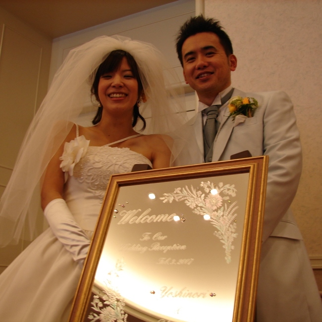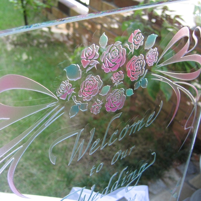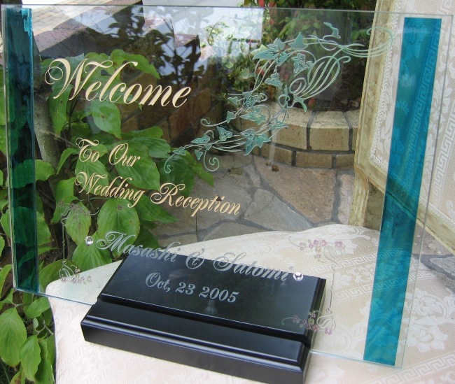 ウェルカムボード / 結婚式・パーティ・店舗の演出は職人手作りのウェディングアイテムで!ギフトやプレゼントにも使え、ご使用後はお部屋のインテリアにどうぞ安芸グラス工芸は本格ガラス工房です。ウェルカムボードの他に、グラス・表札等のガラス製品を製作販売しております |